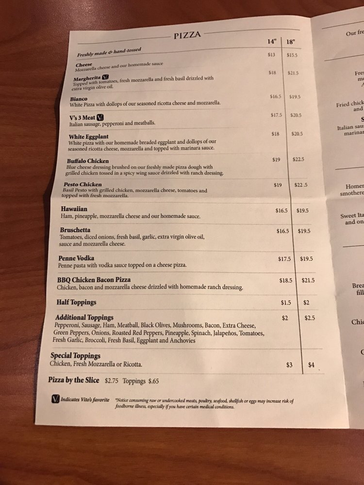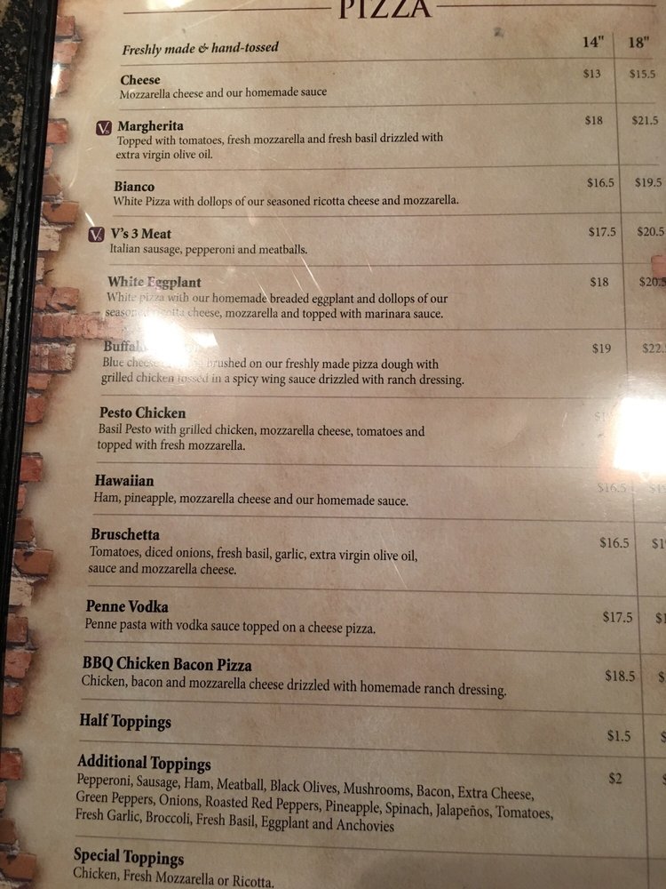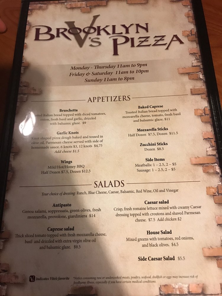 Brooklyn V's Pizza Menu